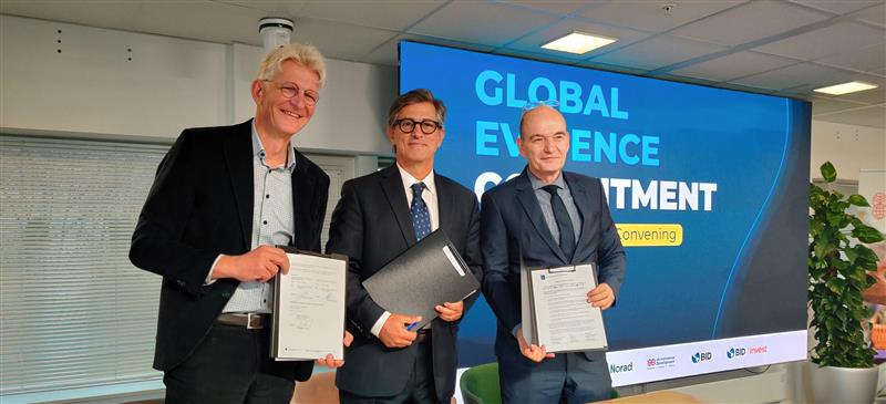 The Global Evidence Commitment founding signatories since 2023 include the Millennium Challenge Corporation, the Inter-American Development Bank, KfW Development Bank, the Norwegian Agency for Development Cooperation, the Foreign, Commonwealth & Development Office, and 3ie.