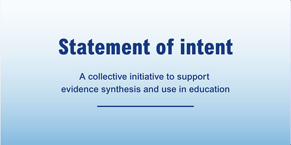The full ‘Statement of Intent’ above is co-signed by: Campbell Collaboration, Durham University, Education Endowment Foundation, Effective Basic Services (eBASE) Africa, EPPI Center, ESRC, Future Evidence Foundation, Innovations for Poverty Action, Inter-agency Network for Education in Emergencies, International Initiative for Impact Evaluation (3ie), Jacobs Center, Jacobs Foundation, The LEGO Foundation, Porticus, viaEd, Wellcome Trust, and the What Works Hub for Global Education.