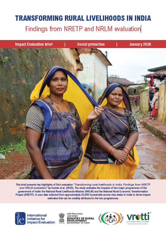 This brief is based on 3ie's study evaluating the impacts of India's National Rural Livelihoods Mission (NRLM), including its enhanced phase under the National Rural Economic Transformation Project (NRETP). NRLM is one of the largest government-led efforts globally to reduce rural poverty through women-led self-help groups (SHGs) and community institutions. In the brief, we summarize the key findings and policy implications of the impact evaluation, which provides robust evidence on the program's effects, drawing on data from around 23,000 households across nine states. The evaluation was conducted in collaboration with the Ministry of Rural Development (MoRD), India, the Gates Foundation, and the World Bank. To know more, click here.